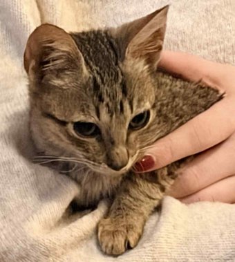 Adoptée par l'association SPA Sud Alpine en métropole. Femelle 3 mois trouvée avec patte fracturée, très maigre