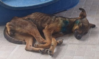 Elle n'avait plus la force de soulever son arrière train pour marcher, pas de blessure apparente, pas de puce, une seul tique, pas de mamelles gonflées ni de lait, elle avait surtout besoin de manger et de se reposer, sa peau était complètement déshydratée.