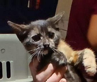 Adoptée par l'association SPA Sud Alpine en métropole. Femelle 3 mois trouvée avec patte fracturée, très maigre