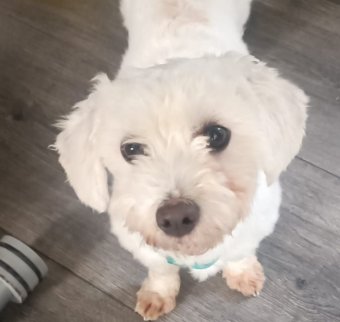 Il a 1 an, a encore des traces de blessures au cou, mais c'est guéri. Genre grand caniche. Gros nounours, gentil avec les chiens et les humains. Une crème